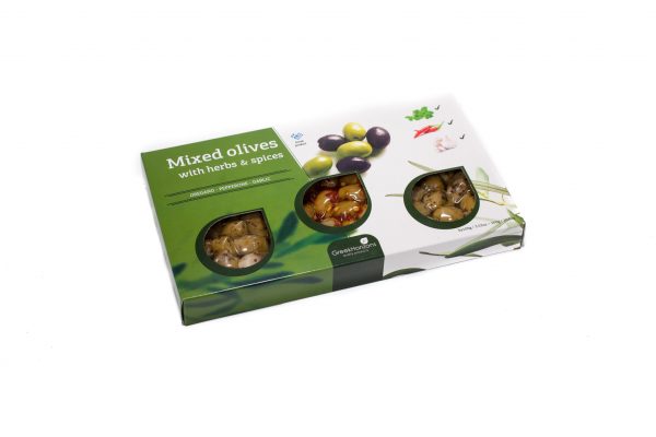Olives box 3 x 100g mixed with herbs and spices
